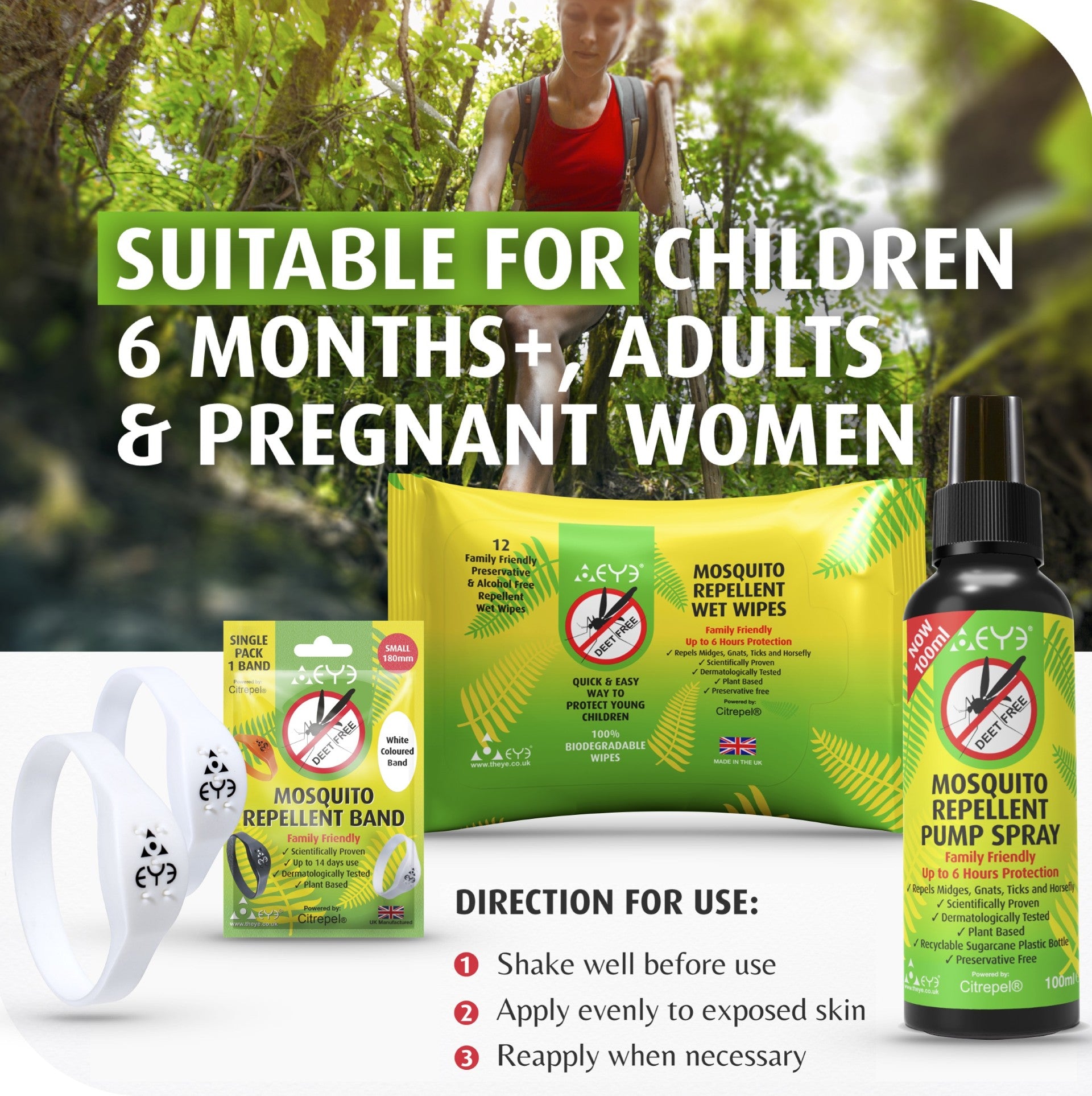 The perfect travel companions, the Mosquito Repellent Micro Spray & Mosquito Repellent Band are great practical products with powerful insect repellent lasting for 6 hours+ from a single application.